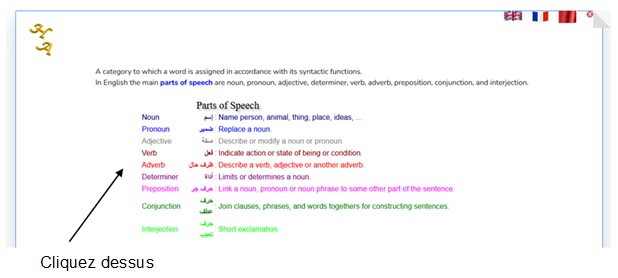 ![]() ![]() Exemple : ![]() ![]() 4.2.3 L’onglet English Grammar.